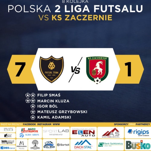 W 3. kolejce 2 Liga Futsalu nasz zespół zaprezentował pełnię futsalowych umiejętności, rozbijając na wyjeździe KS Zaczernie aż 9:1. To był prawdziwy pokaz jakości, skuteczności i zespołowej gry. Dominacja od pierwszej minuty Spotkanie w Rzeszowie od początku przebiegało pod