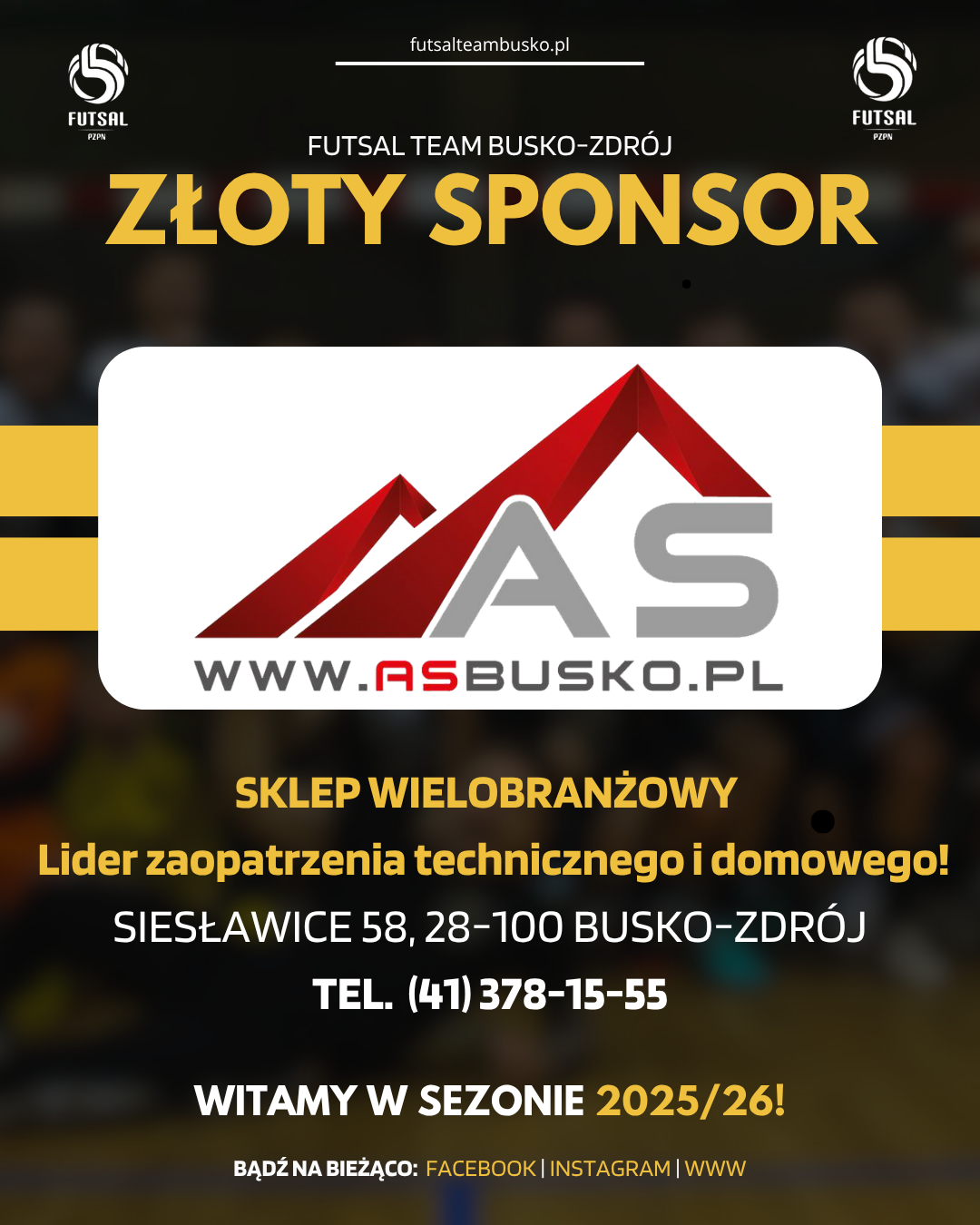 Z ogromną radością informujemy, że do grona naszych Złotych Sponsorów na sezon 2025/26 dołącza AS.Busko – Sklep Wielobranżowy!