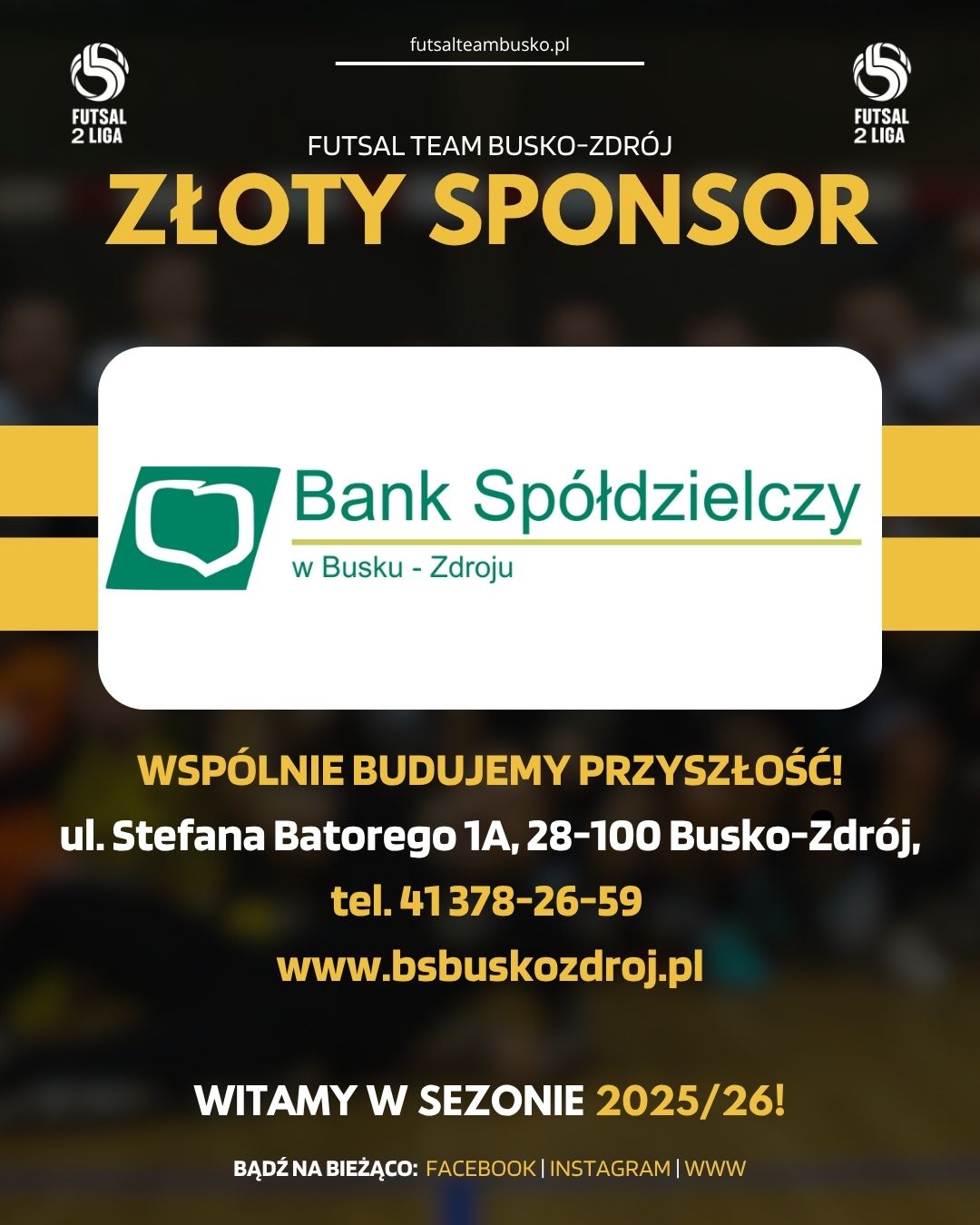 Z dumą informujemy, że do grona naszych Złotych Sponsorów dołącza Bank Spółdzielczy w Busku-Zdroju! 💛🖤